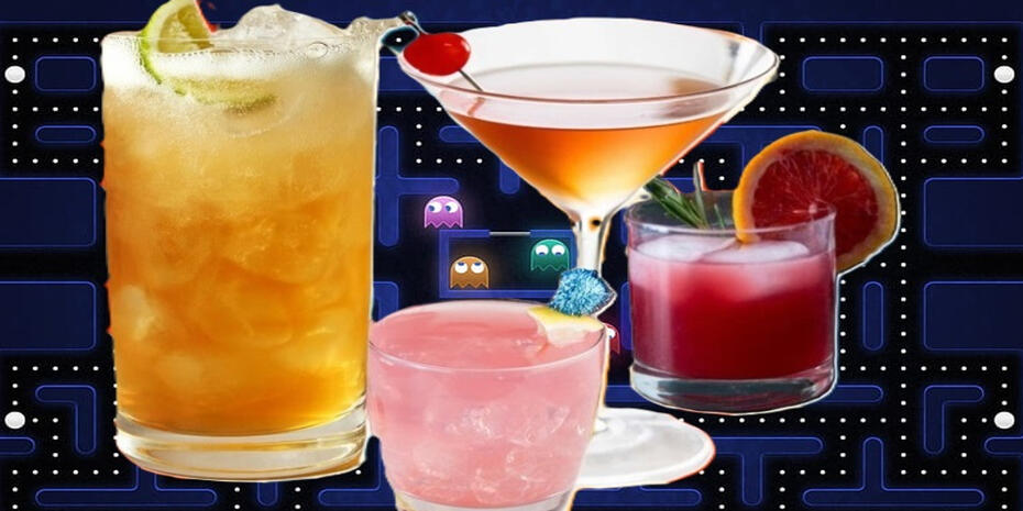PacMan-hattan (bourbon, sweet vermouth, orange bitters w/ maraschino cherry)